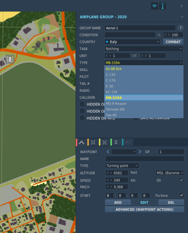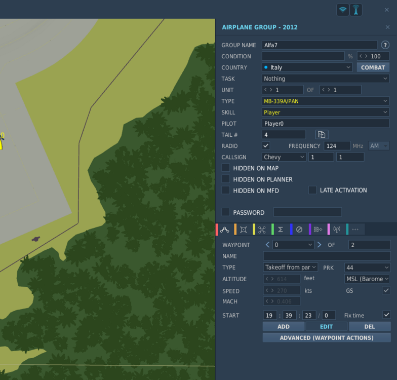 Have not found this topic on the forum, hope it is not a repost... Basically since I purchased the MB-339 I cannot get the PAN variant to show in the Mission Editor. I select Italy, Player, but I only have the choice of the MB-339A. Which is a bit annoying as I purchased the 339 for the PAN variant precisely, which I want to propose to my online display team as a secondary aircraft - but then I need to be able to add it to existing missions. On the other hand, If I create a mission with the Fast Mission menu I do get the MB-339 APAN as an option along the 339A variant. I can then save it and edit in ME. So it is somewhere there but just not directly accessible by the ME. I did a full repair (slow) and am running the current 2.9.5.5530. This is how it shows when starting by the Mission Editor: Then if I turn back to the Fast Mission option in the main menu I get: Which result I can then edit in ME: Any help/advice will be much appreciated!!!