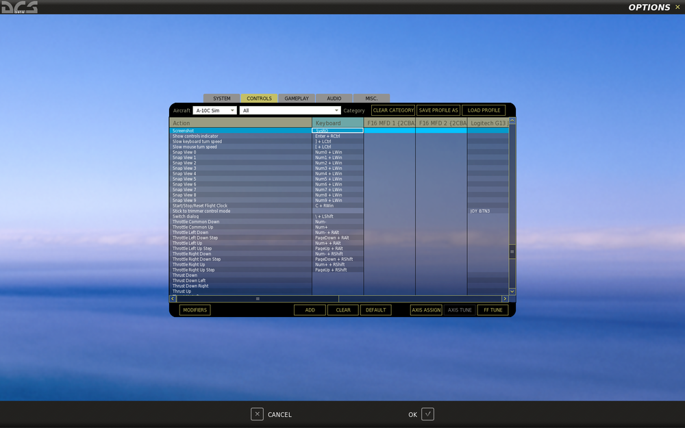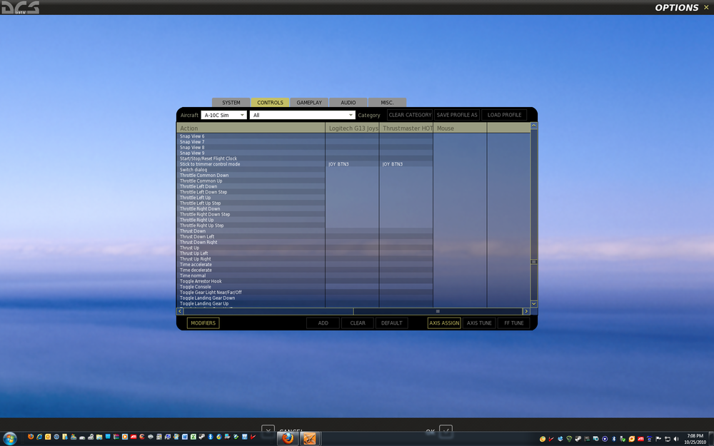 Hi guys, I hate to be that guy but I am struggling here with this Hotas compared to my Cougar experience!!! After a clean install of DCS World and getting my Aircraft serials squared away I proceeded to fly my A-10C. As soon as I go in my plane starts spiraling to the right and when I used the throttles I was all over the sky and nothing was working right......funny, I thought this this HOTAS supported the game right out of the box? I still do not have this whole TARGET *.FCF vs *.LUA profile thing straight in my head. But I managed to figure out if I take Tigor's V2 Profile and move the LAU files into my C:\Users\<User Name>\Saved Games\DCS Warthog\Config\Input\A-10C that may solve my issue. So once I did that and took flight, everything seemed well and I was flying with my rudder in the proper orientation. So I though I had somved the problem, but after getting stupid I thought maybe this will work if I just wanted to jump into FC3 and check out the F-15's just for a peek until I get another profile for the F-15. Well, as before I was all over the sky so I decided to go back and fly my A-10 for a while. Once I went back in my A-10 kept leaning to the right and the throttles were messed up again and I too was cursing Thrustmaster once again in my life! Soes anyone think they know my problem and might be able to help me out here? I am not sure if I have a bad Hotas or it is because I am not loading a good profile into the right place? I still fdo not get the whole TARGET software thing or even how to load the files! So if someone would like to make a new friend and get a Christmas gift from Wisconsin from this frustrated pilot I would surely appreciate some help. I would call you to walk through this whole thing so I clue into what the heck I am doing here finally. I have checked all my connections, re-married the stick with the base, used USB ports on the back of my motherboard, and have updated my firmware on the Hotas. I have the following show up in my Input folder: Logitech G13 controller Thrustmaster Throttle Thrustmaster Joystick Keyboard CH PRoducts Rudder Pedals Cheers, DRAGGON