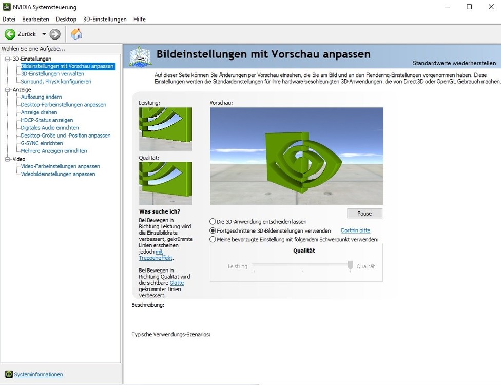 Vielen Dank schonmal für die Lösungsansätze. Oh man, das mit dem Ethernet war ja richtiger quatsch von mir, ist mir auch nach dem posten wieder klar geworden . Ich habe jetzt die meiste Zeit mit eingeschaltetem VSync gespielt, aber habe es eben auf dem selben Server nochmal ausgeschaltet probiert. Aber es war wieder das gleiche, also im Singleplayer keine Probleme, im Multiplayer bereits im Cockpit erste Tearingeffekte und im Flug dann noch deutlicher, auch wenn mir der Effekt ohne VSync etwas schwächer erscheint (es waren aber auch um die Uhrzeit keine anderen Spieler auf dem Server, vielleicht deshalb). --------------------------------Einstellungen------------------------------------- Ich war mir jetzt bei Nvidia nicht sicher welche Einstellungen wirklich interessant sind, deshalb habe ich erstmal nur die 3D-Einstellungen gepostet. Die VR-Auflösung habe ich etwas höher gezogen als sie eigentlich empfohlen wird, da DCS mit der empfohlenen Auflösung ein reines Pixelfest ist und man dann weder Instrumente ordentlich ablesen kann, noch in der Lage wäre Ziele zu erkennen. Ich habe die Auflösung zu Testzwecken auch wieder auf empfohlen gezogen, was aber keine Performanceverbesserung brachte. Meine DCS Grafikeinstellungen sind eigentlich auch ziemlich bodenständig möchte ich meinen. Habe auch nochmal wie von dir vorgeschlagen die Energieverwaltung geprüft, die ist allerdings schon auf Höchstleistung eingestellt und sämtliche Energiesparmodi sind deaktiviert.