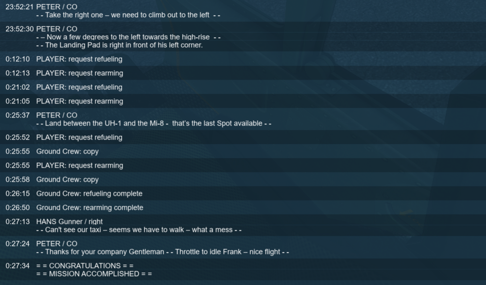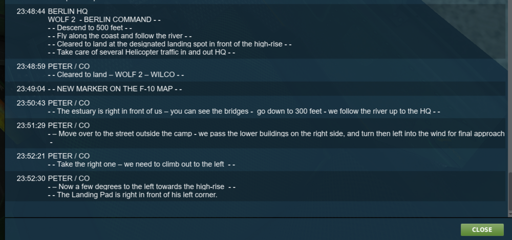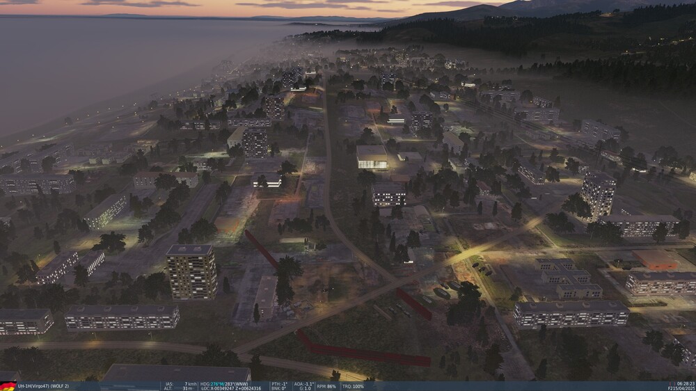 I'm struggling with the Night Flight mission (10th mission in the list, file WORLDS APART Mission 9.miz, title "Mission 7 / Nigth Flight"). Everything goes well until I have to drop the passenger at the Berlin Command. But I have no idea where is the LZ for the drop. This is the marker that was on the map earlier during the mission - I thought that's the place: But after approaching "Berlin", the marker disappears, and the map looks like this: null Later, I get into this message history: And the situation looks like this: I tried various spots around some high-rises, mostly around the one on the right in the picture - but no luck. After running low on fuel, I gave up, landed at Batumi repair parking spot and that concluded the mission successfully. But I'm not quite satisfied, obviously. What am I missing? Thanks for the hint!