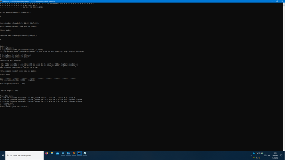 @Miguel21 ...good work Buddy ! Here's my short feedback with TF-71 Hornet Campaign : activated CAPs in "oob_air_init.lua" and got now 3 different types of missions, CAP, Strike and Sead Restarted Campaign (running "first mission.bat") and again 3 missions. Started ingame campaign with 1st mission, after succeeding got 2nd mission generated again with 3 different missions : CAP, Strike and Anti-ship After 2nd mission new one generated and again 3 different missions ! Runs fine and looks very promising... Is there any tutorial for Campaign creating ? I'ld like to build my own campaign for Syria map Took a look inside files but could not sort out how it works.