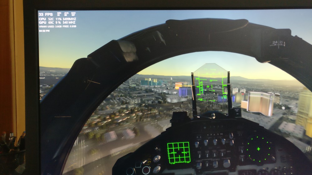 Its benchmark time! OK guys so I ran DCS 2 over nevada. Test setup: Graphics settings used was the HIGH preset @1440P, with Vsync off so that doesnt get FPS capped. I5 System specs: 2500K@4.5Ghz 16GB RAM 1600MHZ CL 11 GTX 970 G1 Gaming stock Windows 7 R7 System specs: R7 1700X@3.5Ghz 16GB RAM @2933Mhz CL14 (I'm keeping the second kit in the box until BIOS updates) GTX 970 G1 Gaming stock windows 10 Here are the results: Mission start: 2500K=68 FPS, R7=71 FPS Over nellis: 2500K=58 FPS, R7=61 FPS Las vegas downtown: 2500K=30FPS, R7=33FPS Las vegas airport: 2500K=43 FPS; R7=41FPS The game reports very low GPU/CPU usage, TBH the results seem pretty much within margin of error. Kinda what I expected to be. Conclusions: ED better harness all this untapped hardware potential as the game optimization is falling behind what hardware can achieve these days. If your upgrading specifically for DCS and already have sandy bridge processors and up, save the money and get more memory, 8 or more GB and an SSD if you already dont have. Everything else is a waste of money. Below I post the screenshots for the timestamps above. The red FPS indication belongs to 2500K, the white FPS indication is R7 on windows 10 (for some reason it stays on on all games and cant get rid of it).