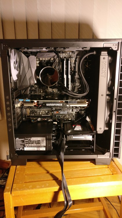 The sun has set on my old 2500K. :bye_3: I am now writing these lines on my new R7 system.:robot: Still missing the HDD, the case fans and cables hanging. I am just setting windows up and programs. I recorded the track and took a few time stamps with FPS. I will compare with this new system as soon as everything is up again.