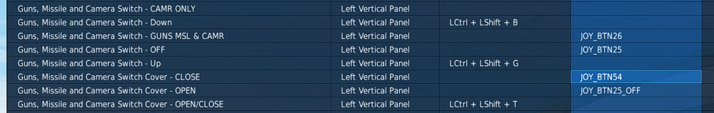 OK, I've just checked my setup and I didn't manage this with normal/Quagles/custom binds as unlike some other modules you can't close the in game cover unless you first turn the in game switch off (in the F-14 flipping the in game cover knocks the switch to off as well) and the way Virpil toggles work by default. ....but you can add an extra 'button' using the VPC Config tool that then allows you to achieve it. In the Virpil config add another DX button, set it to be activated by the same physical button as the toggle when pushed down and set it to mode 'press and hold'. So the control panel now send one button press when up and two when down (one set normal and one set 'p&h'). In my setup these are: Toggle Up = BTN_26 Toggle Down Normal = BTN_25 Toggle Down P&H = BTN_54 And I map them like this: Which means when I flip the cover up DCS opens the cover, when I then push the toggle up it then moves to armed, when I close the cover it first send the normal command to move to safe and then a moment later is sends the push & hold to close the cover/