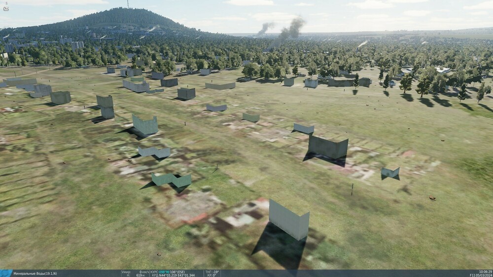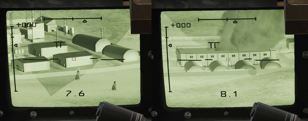 И всё-же что-то не то с отображением текстур и моделей зданий в Сирии. В настройках графики видимость стоит "Очень высоко". Дальность 7,6-8,1 км - всё равно ангары с арочными крышами без текстур и с упрощёнными моделями, в то время как стоящие рядом здания с двухскатными крышами и большое здание с окнами отображаются нормально (см. скрины). Да, но на карте Синай, которая сравнима с Сирией по тяжести, в ПКЦ здания отображаются нормально на значительных дальностях. Скрин не сделал, но разглядывать строения в ПКЦ на дальностях 20-30 миль в Синае приятнее, чем в Сирии.