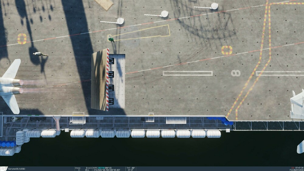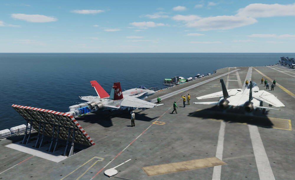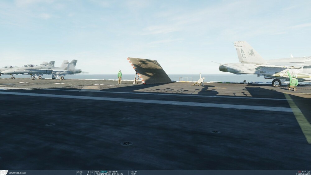 У всех нормально отображаются газовые струи F/A-18 на авианосце? У меня часто они оторваны от сопел и отрисовываются за несколько метров позади. Причём это только на палубе (в полёте и на стационарных аэродромах нормально) и только на F/A-18. Видеокарта GeForce GTX 1050 мобильная, драйвер относительно свежий, декабрьский. На первом скриншоте Хорнет и Томкэт с запущенными двигателями. На третьем скриншоте по дренажным отверстиям на палубе видно место, где начинают отрисовываться струи, за газоотбойником, возле цифры 8.