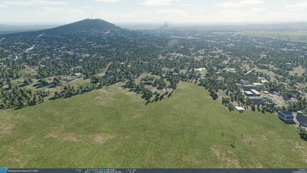 Кавказ. Пятигорск. Координаты места видно на скриншоте. Неправильное отображение зданий, и при приближении камеры исчезают деревья.