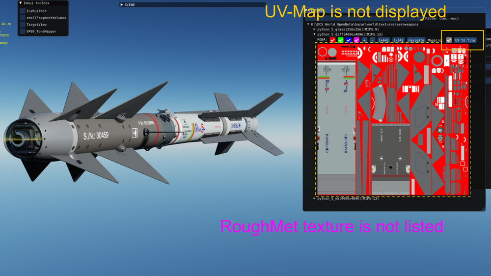 Dear Community, Every time I export a 3D model from Blender [currently: Blender 4.2.1 LTS] using the official Blender plugin from ED [currently: edm_tools_blender_plugin-241504.zip], I encounter the following issues: The Roughmet texture is not listed under textures in the model viewer. The textures in the model viewer are simply scaled down. Normally, the main texture (excluding glass surfaces) has a resolution of 4096 x 4096. When I check the mapping box, the UV map does not appear. In the model viewer, mipmaps are scaled down, causing the UV map to no longer align with the texture, resulting in red edges (red is used for visualization). Section of the uv-map in blender: In my graphics software, I have extended the borders by 8 pixels around the UV seams to allow for enough tolerance. Seam margin of 8 Pixel (vector graphics program): When I zoom out on my model in Blender, no red edges are visible, meaning the UV map and textures match. The exact same issue occurs with all other 3D models I’ve exported from Blender. Screenshot Blender 3D viewport (Render): I suspect an error with the export plugin. Can anyone explain why these errors are occurring? Thank you in advance. Cheers Homelander