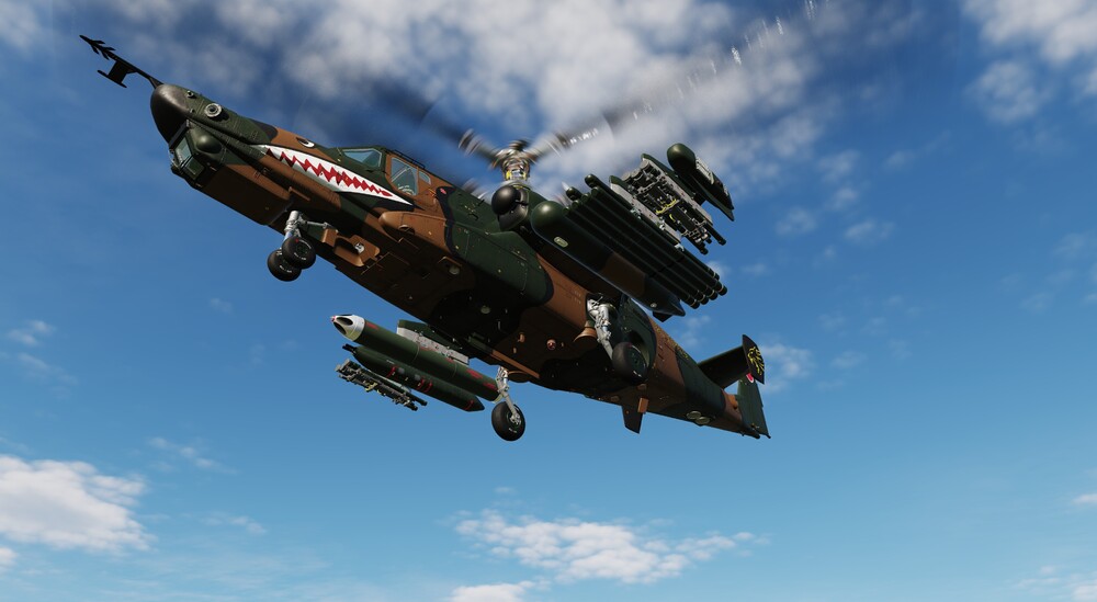 Homelander and Space Mutt Industries proudly present to you my liveries and 3D models (to follow later). Ka-50 Black Shark 3 | Fictional Japanese JASDF Livery Fictional Japanese JASDF Livery for the DCS KA-50 Black Shark 3 The RoughMet and Normal Maps have been adjusted or completely recreated. Special Features: • Custom pilot uniform and helmet design • Custom tires • Custom rotor • Custom fuel tanks • Custom IR deflectors • All weapon pods have been color-matched to perfectly complement the aircraft's livery. Special attention was given to achieving seamless transitions between the individual UV islands. The graphics may not be redistributed and/or modified without my explicit permission https://www.digitalcombatsimulator.com/en/files/3342615/ Ka-50 Black Shark 3 | Fictional Israeli IDF Livery Fictional Israeli IDF Livery for the DCS KA-50 Black Shark 3 The RoughMet and Normal Maps have been adjusted or completely recreated. Special Features: • Custom pilot uniform and helmet design • Custom tires • Custom rotor • Custom fuel tanks • Custom IR deflectors • All weapon pods have been color-matched to perfectly complement the aircraft's livery. Special attention was given to achieving seamless transitions between the individual UV islands. The graphics may not be redistributed and/or modified without my explicit permission Cheers Homelander https://www.digitalcombatsimulator.com/en/files/3342616/