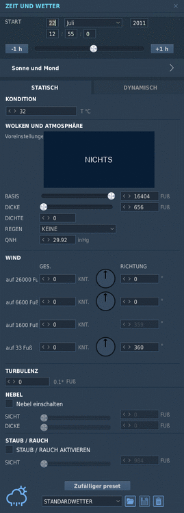 @QuiGon Anbei sende ich dir fünf vier [5 MB Datenlimit] Trackfiles bezüglich GBU-54 (LJADAM). Drei Zwei [5 MB Datenlimit] Trackfiles mit TGP SPI «Laser Code 1687», GBU «Laser Code 1688», Laser «ON» und zwei Trackfiles TGP SPI, Markpoint erstellt, Last Markpoint SPI. Zu testzwecken wurde der Wind bez. Turbulenzen komplett deaktivieren [siehe Screenshot]. Trackfiles 1-2 TGP SPI: GBU TGP no MARK2.trkGBU TGP no MARK3.trk Trackfiles 3-4 Markpoint SPI: GBU TGP w MARK1.trkGBU TGP w MARK2.trk Screenshot Zeit und Wetter: Ich bedanke mich schon im Voraus. PS: Kann man den Speicherplatz im Forum erweitern? Bei meinen vielen Fragen ist das Datenvolumen bald erschöpft.