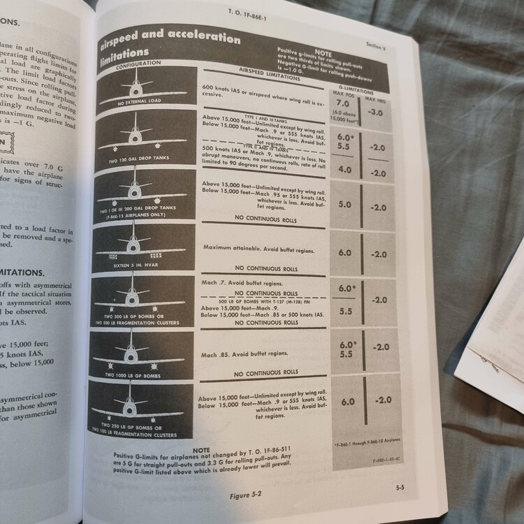 If I'm reading the charts correctly and looking at the current weight of the F-86 in game the "basic weight" (as per the above definition which is full ammo, [no pilot assuming 230lb pilot as per Pilot manual referenced above in T.O.F-86F-1] is 11585lbs) is still set too low somehow at 11669lbs (assuming pilot weight removed this rounds down to 11,439lbs) which is still 149lbs under weight. "Basic weight" conditions in mission editor vs Gross weight conditions as per mission editor As a side note, the max internal fuel appears to be off by 16lbs according to the "Standard Aircraft Characteristics" chart for an F-86F-25 through F-40 "air superiority mission" typical mission graph and thankfully only 1lb off according to the T.O.F-86F-1 pilot manual. Here's hoping that the weight issue is sorted out soon On a side note, given that this post from May 2022 states the guns are modelled at only half their weight in the code and the only updates the Sabre has received in the last 2 years have been to the controls effectiveness/IR signature/clickable switches and campaign missions, I wonder how it would affect the overall weight taking that into account?- 16 replies