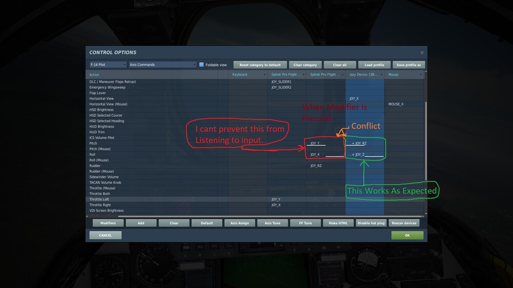 -None Plane specific master Category in adjust controls like General or UI can potentially cause conflict with your Plane specific category .