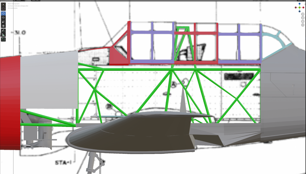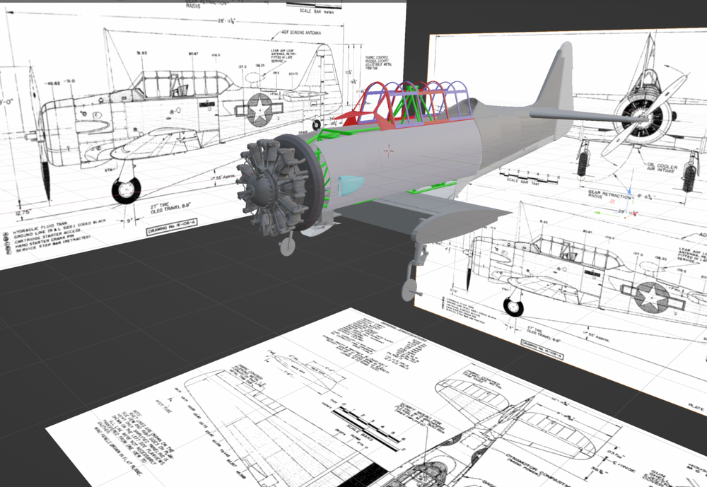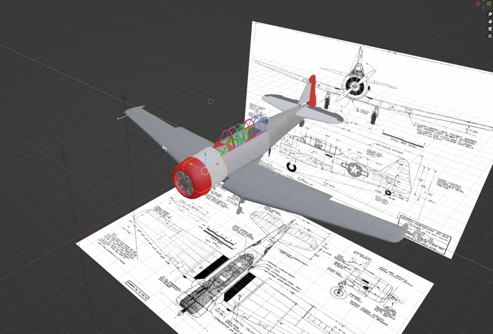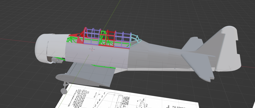 AT-6 Texan / SNJ-4C by DewFiendDewFiend replied to DewFiend's topic in Flyable/Drivable Mods for DCS World sorry to not have responded in a prompt manner, I am just getting back into the swing of things after the holidays... To answer your question, I have many different sources that include friends with access to airworthy aircraft, a library of photo reference books, a legit parts catalog from North American that dates back to the 1950's, some detailed blueprints for a Wirraway, some scale drawings intended for models, and some freehand guesswork when drawing it up in CAD to make it all fit together. I am including a progress pic with some drawings lined up to create an orthographic projection that I use as guidelines for the overall shape of the aircraft. I would love all the help that I can get.