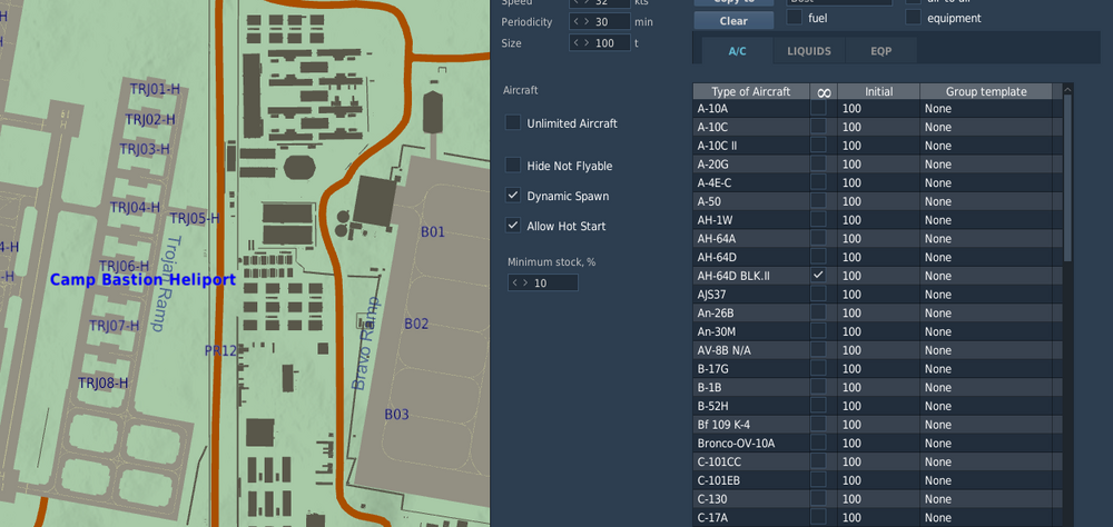 Salute Please may I ask what the circled feature does, as I assumed it meant that these aircraft are available at the airfield, however I can select other types not ticked? Apologies if I am not understanding this feature correctly and this is expected functionality. Love the feature for hot cold starts by the way. nullnull