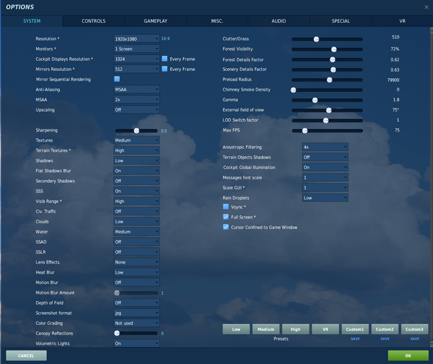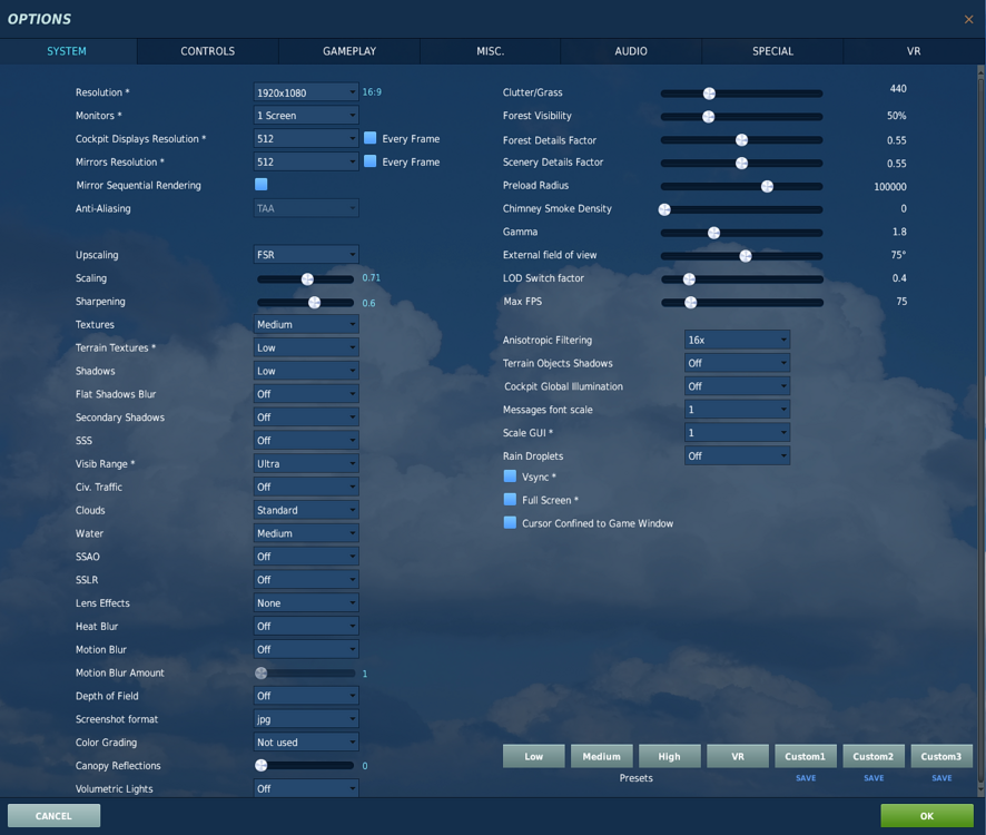 So as a matter of fact, no matter what I'll do, everything feels blurry in the cockpit and everywhere around, especially in cockpit, like numbers indications, lights etc. It feels like everything is zoomed and blurred at the same time. I get it that it might has to be that I'm running the whole thing in low settings to have these 72fps stable, but I've seen other people on Yt videos having their picture seem crystal clean. So i'm not sure what I'm missing here. On the other hand maybe I'm not missing something as this might be the drawback of using VR...