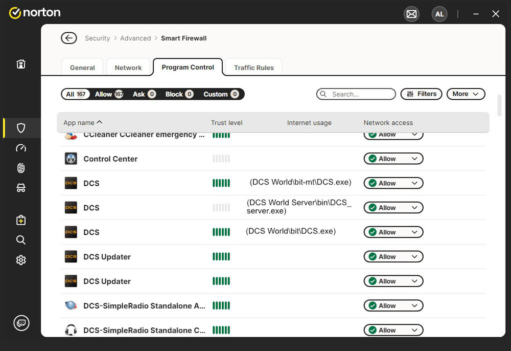 AAARGHHH! This is driving me nuts! I've been playing with this for days. I am unable to host multi player missions! So far I have tried setting up a multi player mission directly in DCS ... I can play the mission but nobody else can access it. I can see it in the multi player server missions window but it doesn't show for anyone else. I then tried it via the DCS Server ... Again, I can play the mission, I can see the mission in the Multi player server window but nobody else can. I have attached both my router settings and my Norton 360 settings ... I created a port forwarding entry on the server for both TCP and UDP just in case. The "Internet usage" just shows the route of the permissions settings. The following two images are the Traffic Rules in Norton 360. Again, I set seperate rules for TCP and UPD (Ignore the "Edit Rule" Titles, I edited one to save doing two snips) When I test the 10308 port on my computer using PowerShell and "Test-NetConnection -ComputerNamer 127.0.0.1 -Port 10308" it works fine. When I try testing the port using an on-line service (YouGetSignal.com) the port fails. That's it guys. I'm at a loss. Any ideas? Many thanks Nial
