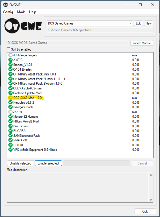 Hi, yes, perfect thanks. When I went to the download site I completely missed th elink for the crew and lights *DOH* Something else you may be able to help with ... I placed the extracted folder to my OvGME Saved Games Folder and activated it from OvGME but it doesnt load in the correct location - "E:\Saved Games\DCS.openbeta\Mods\Tech". If I copy and past the extracted folder directly to "E:\Saved Games\DCS.openbeta\Mods\Tech", the MOD works fine. I tried importing the MOD directly into OvGME but you can only import ZIP files, and not RAR files. Of course, I tried converting the RAR to ZIP but that didn't work either Cheers Nial- 550 replies