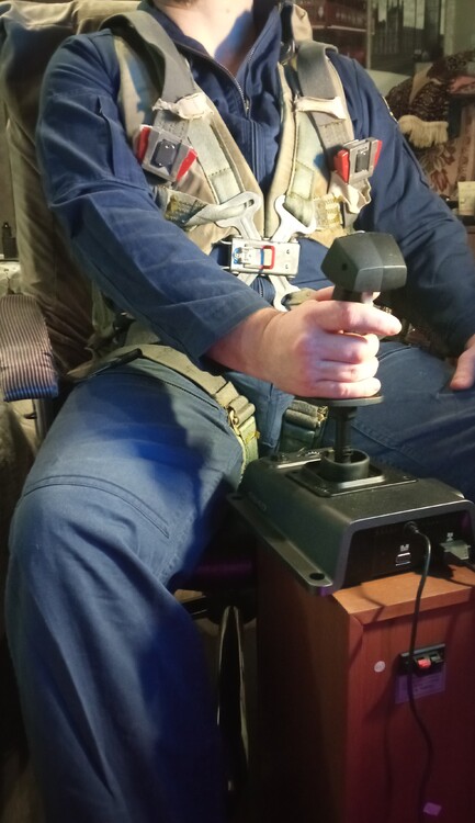 Друзья прелагаю вашему вниманию уникальную в своем роде вещь. Вибронакидка, совмещенная с парашютной подвесной системой ПСУ-36! Использовалась с катапультными креслами К-36 на таких самолетах как СУ-27,МИГ-29,СУ-25. теперь о накидке накидка у меня была уже давно пользовался я ей раза 2 (не зашла) постоянно съезжала, моторы где-то там кресло большое. в общем решил я собрать вот такую систему за счет плотного обхвата вибромолоты прилегают плотно к телу FFB +150% С ней прекрасно чувствуется отрыв колес при разбеге, уборке и выпуск шасси, касание при посадке, срыв потока с крыла, флаттер, стрельба из крупного калибра. Для VR это просто МАСТ ХЕВ!!! И кажется, что вроде бы и ничего нового они не привнесли в процесс погружения в виртуальную реальность. Зато, когда перед полетом забудешь одеть систему, сразу возникает ощущение какой-то неполноценности, что чего-то не хватает, ты перестаешь чувствовать самолет. (очень редкий зверь)