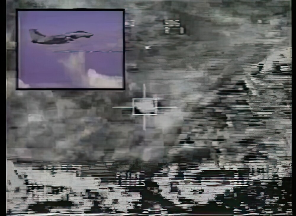 Oh, pixel counting - my favourite job! (Actually, I'm almost crying thinking about those hours spent measuring all elements of the LANTIRN display from the available videos.) So, this is tricky stuff because we have almost no footage of how it looked in the cockpit, and everything comes from the videos like the one above. I don't know how they got those recordings, but it seems like recording through a VHS camera footage played from another VHS device. I mean, the quality appears to be much worse than the original feed, everything much more blurry, not to mention the stretching from the aspect ratio difference. So definitely, nothing is blocky (even the symbology) because we're watching it through grease-covered glasses . It's so bad that I struggled with deciding if some symbols were single-pixel or double-pixel width. Finally, the shots from the EXP view are pretty rare. I guess the crews didn't enjoy the digital zoom (TBH, I never use it when I fly). But the Fighter Fling 1995 video has some, and I took a screenshot: It is blocky - the smallest squares are double the size of the font pixels. Ofc it's also very blurred - so much so that reading the text is difficult.