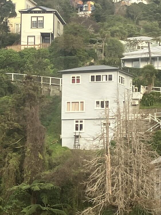 Short of making a different set of buildings for every 5 degree change in slope, I don't know what you expect them to do though. If you look at this image of actual houses, if you reduced the actual terrain to a mesh with even 2m resolution on contours, the buildings on the actual site would have terrain clipping windows and doors in midair... I agree about the cars though - either don't put them on terrain with enough slope to make terrain clipping an issue, or have all scenery cars sit perpendicular to the local terrain, not to the horizon (& I may be showing my ignorance her, but it seems to me there are way too many cars parked in backyards for rural Afghanistan anyway - ? There's only 1 motor vehicle (of any sort) for every 18 people in Afghanistan [one for every 1.07 people here in NZ], and surely they're going to disproportionately in the cities & more affluent / industrialised parts of the country, not parked in the back yard of remote houses with no connection to paved roads?) As someone who lives amongst houses built on hills, apart from some issues with shadows, the buildings in the attached snip look pretty convincing in their perches. Another storey added to the foundations wouldn't hurt though...