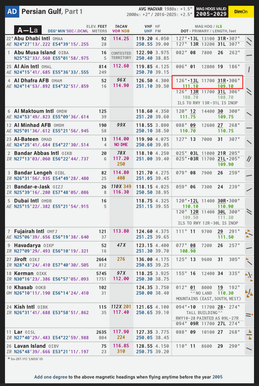 Hi Minsky, Report: seems the ILS freqs of AI Dhafra AFB in Gulf are reversed -- 13 is 109.10, 31 is 111.10. Thank you & Cheers! null -