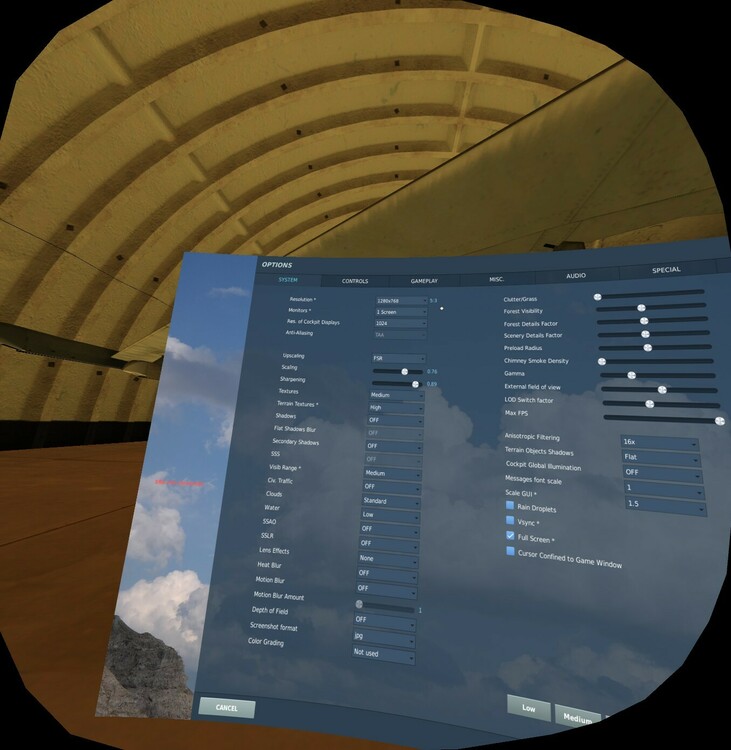 I got the 2152 from some youtube video on optimizing your settings. I don't know what the magic is behind it, truth be told I really don't understand the numbers, but it works. I tried resetting to 3440, and also used "0" for default. Both made everything worse. Not only did the "vibration" get worse, but got flickering and stuttering and frame drops, and DCS even crashed. Returned to 2152 and back to smooth operations. No idea what that means, I would think if 3440 is native, that would be the ideal settings. SInce DCS 2.9 came out I've been using FSR, which I think is an AMD version of upscaling. It helps a lot reducing aliasing with out too much performance hit. Maybe I have an ODT/FSR conflict??