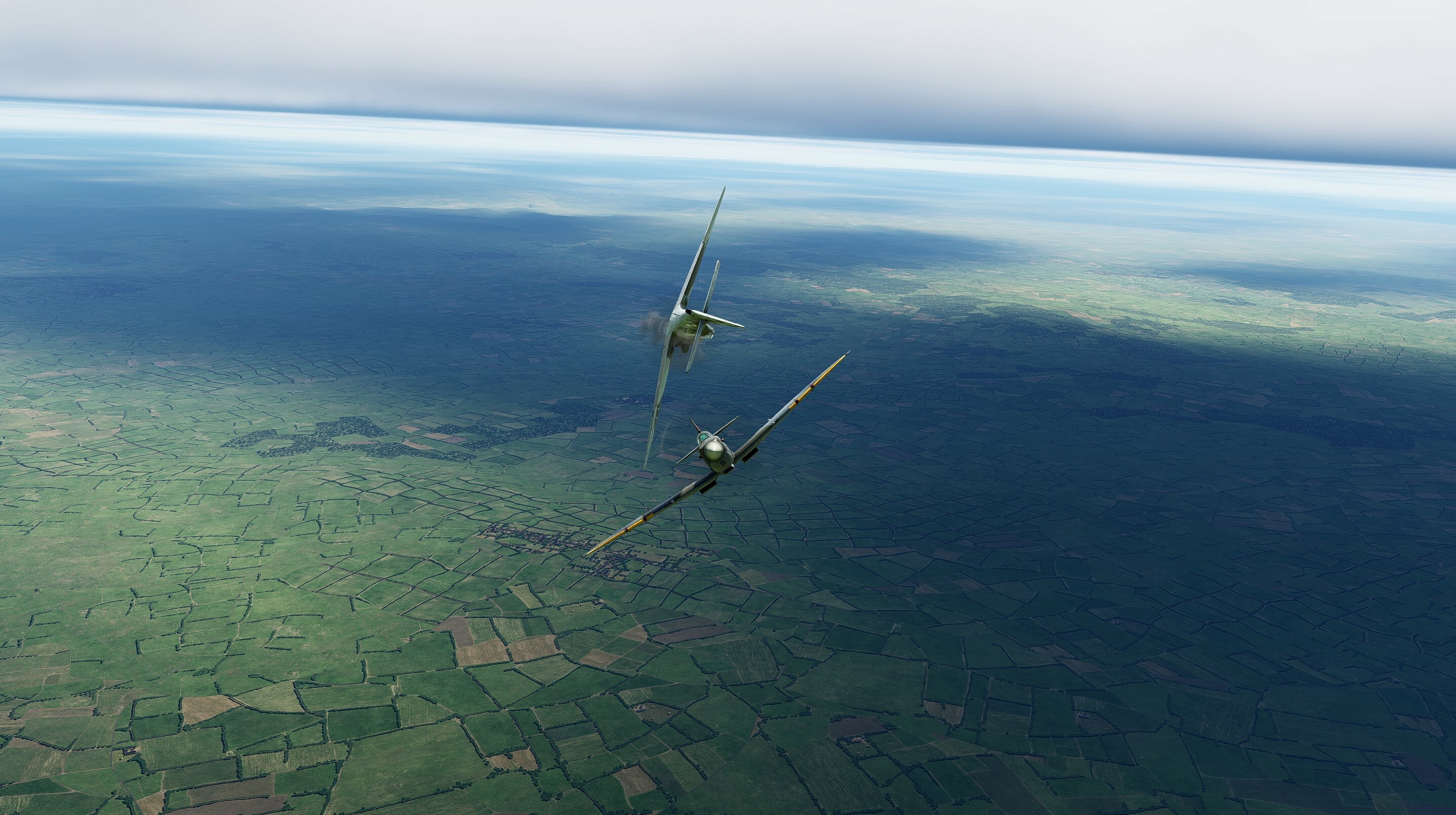 Dawn Bomber escort mission, doesn't go so well for E for Easy. I'm way out of position and a single snapper is all it takes, lose sight of the snapper then head for Manston for a touch and go before RTB. This ends up more touch than go owing to another new control bind fudge. -
