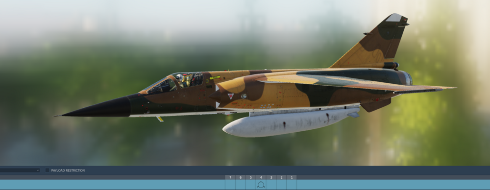 Hi ! Some variants of the Mirage F1 in DCS can equip the RPL 201 (2310L) fuel tank (AI Only). This fuel tank has been developped to fit on the Irakian mirage f1's, and was used later by the French Air Force. As we know in DCS we only have Spanish exportation variants, but this variant could technically be equipped with the fuel tank, given that it takes nothing to equip it apart the pylon wich comes with the fuel tank. It could be a great addition to the module to have more fuel on the center pylon and it gives new loadouts possibilities. As the Rpl 201 is already in game so i think there is not so much work to do to make it work on the flyable versions.