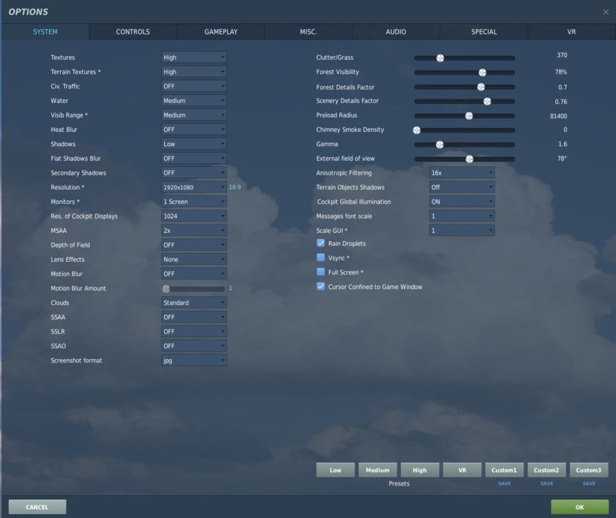VR Settings (enable VR Headset is disabled to take Screenshots)