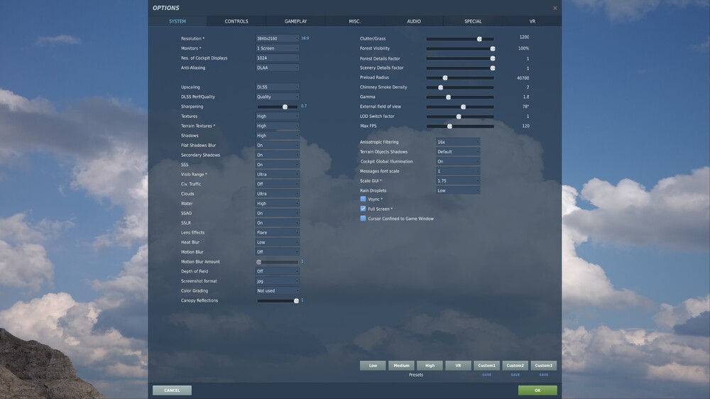 Good points. I fly the A-10Cii no real air-to-air engagements, so I don't turn on the mirrors. I'm probably not taxing my i5 pc and 4070-Super graphics card that much, and can get away with higher settings.