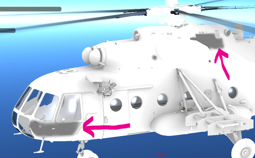 How to get rid of this ambient occlusion? I check the blue channel on my custom roughmet and it's not there, but in model viewer it is. Also, all default skins have them. I guess the cockpit one is for armor plate, but the second one is beyond my comprehension. null