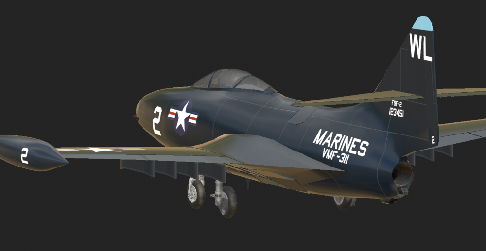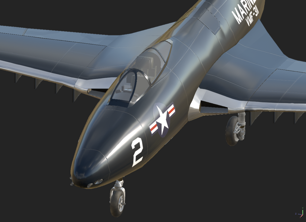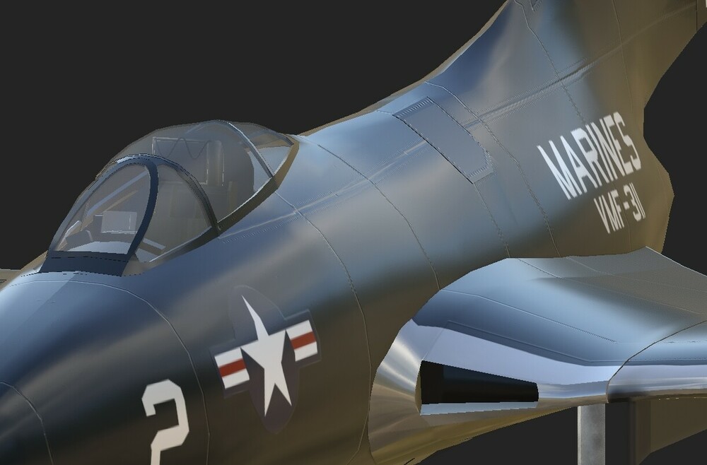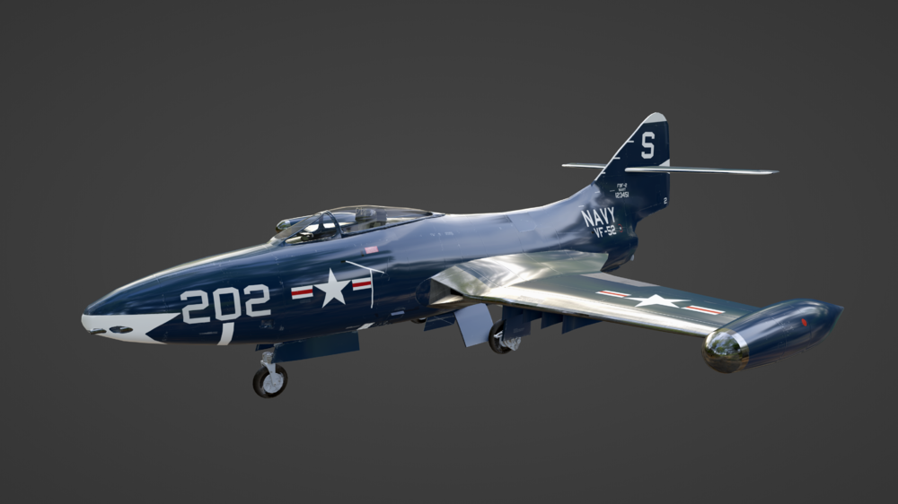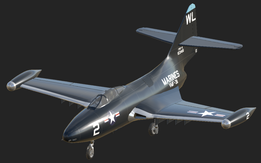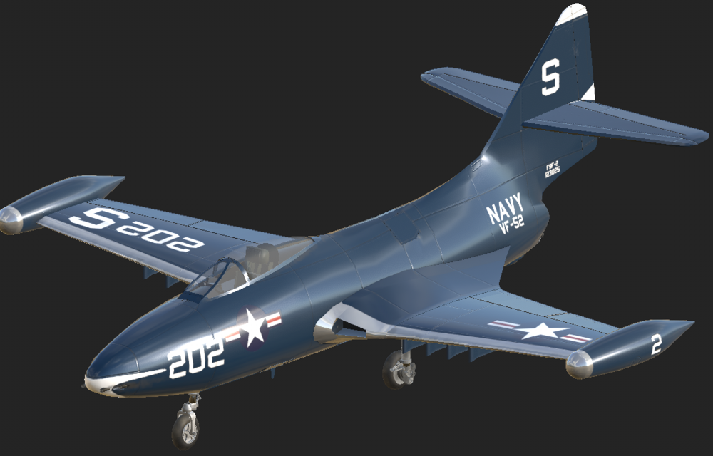 Here are some early WIP images from a project I'm doing to expand on 1950s Korean war era aircraft we currently have. This will try to accurately replicate the F9F-2 early era Panther from the start of the Korean war. The aircraft will be capable of taking off and landing on capable carriers in the game. I'm hoping for a full fidelity module using the EFM with interactive cockpit physics and damage model. And able to use the common air to ground weapons found on the F9F-2 20mm cannons and up to two 1.000 pound bombs and unguided rockets for ground attack missions. See rest of this topic for regular updates!