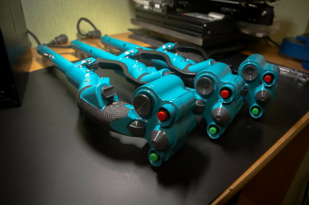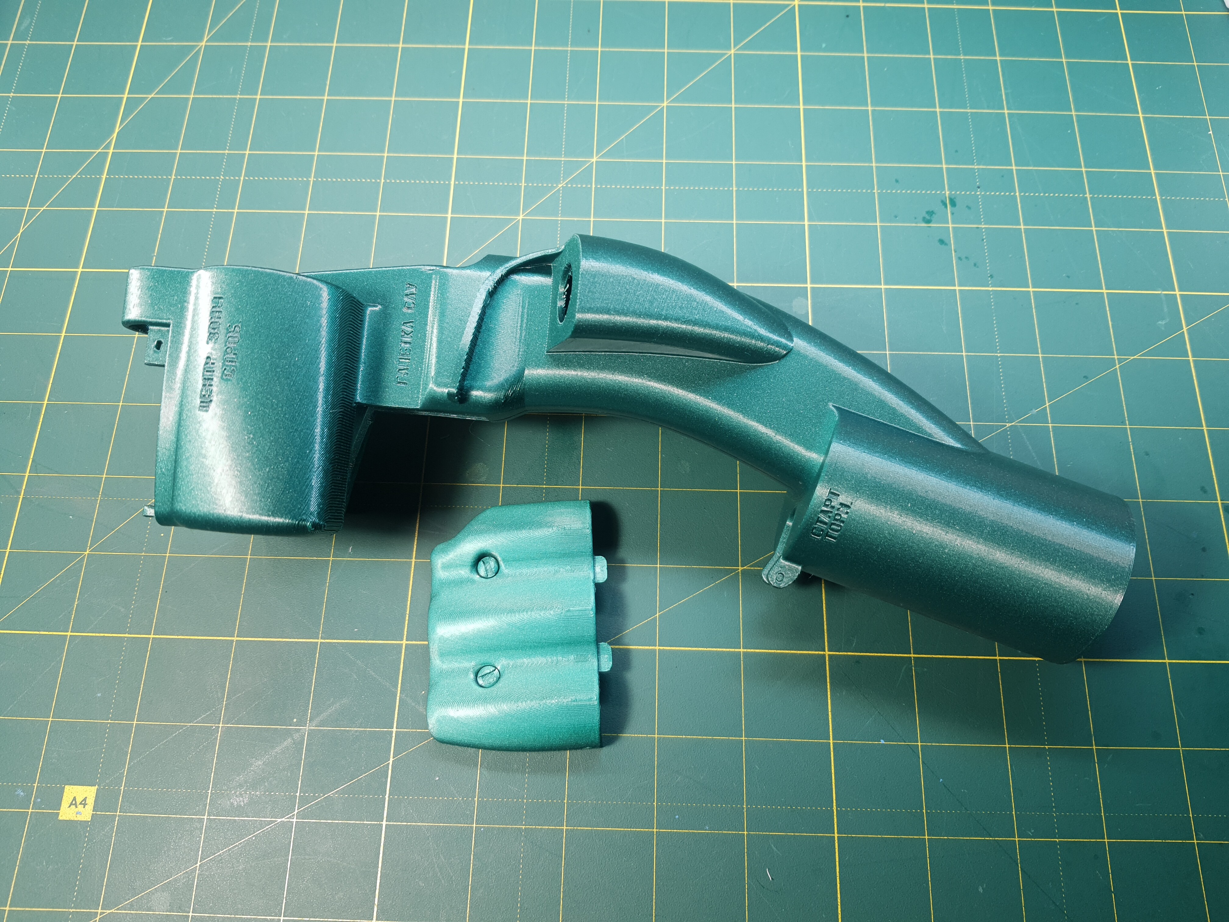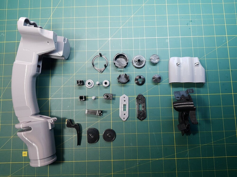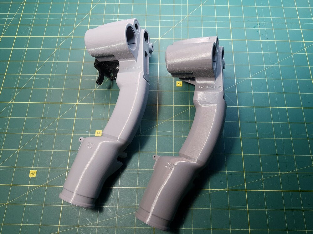 Была моделька РУСа Су-27, но увы там было много оплошностей... Была сделана 1 тестовая модель ручки Су-27, в итоге тонкие стенки, во вторых она с 2 половинок и в третьих 4 болта под крепеж. Было принято решение, взять за основу эту модель и изучить размеры, и нарисовать заново геометрию ручки. Была сделана тестовая цельная ручка, серого цвета, без внутреннего крепежа. На 3 ручки, зеленого цвета, уже были добавлены наработки, утолщение стенки и улучшение крепежа. Скорее всего на 4 модели, будут следующий доработки, крышка будет под болты М4 как и на оригинальном РУСе. Также под крепеж механизма курков, будут сделаны отверстия и утолщения.