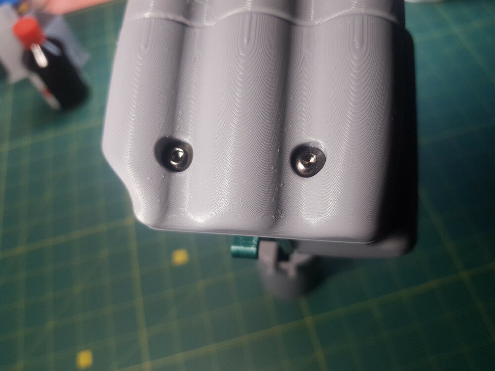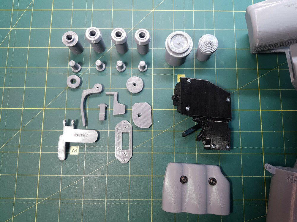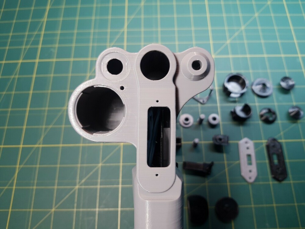 Модернизация продолжаеться... В четвертой версии, были сделаны крепеж под крышку и под механизм гашетки Теперь крышка и гашетка, крепиться на болты как в оригинале.