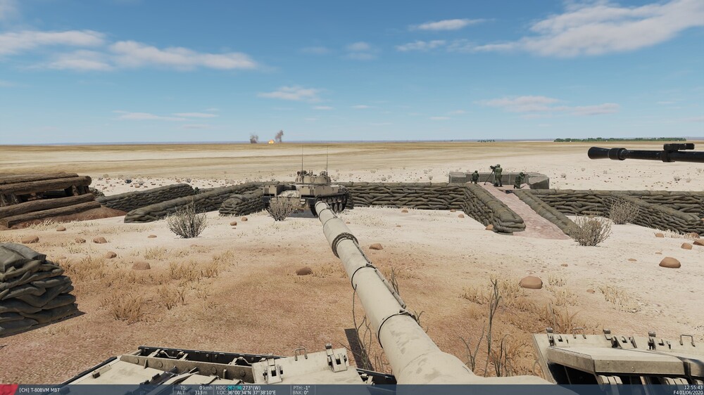 This is not a mission, just a position in the middle of nowhere defending against enemy infantry... CH's T-80 BVM tank hurries to help friendlies. -
