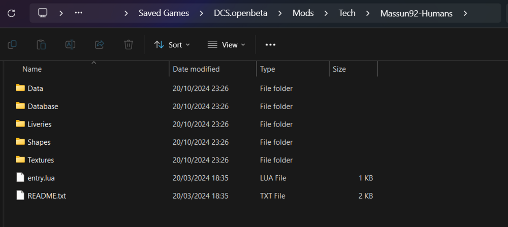 When I download the mod, file name says Massun92-Humans v1.0 not 3.2 or whatever the current version is(there's animated file in the rar file). Anyway, I tried to installed the mod by following the tutorial but I can't find the animated assets. Is there's any way to fix this? I've already tried repair DCS and disable all other mods.