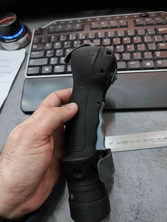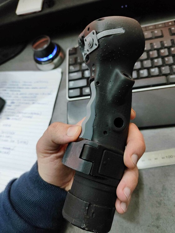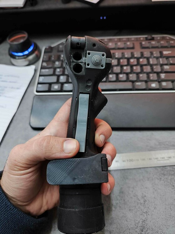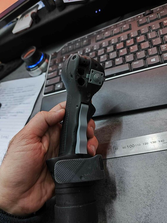 I did a 3D scan the original Mirage F-1C stick. And now I am on the processing step, to make the holes for the buttons, triggers etc. Next is to print a test. -