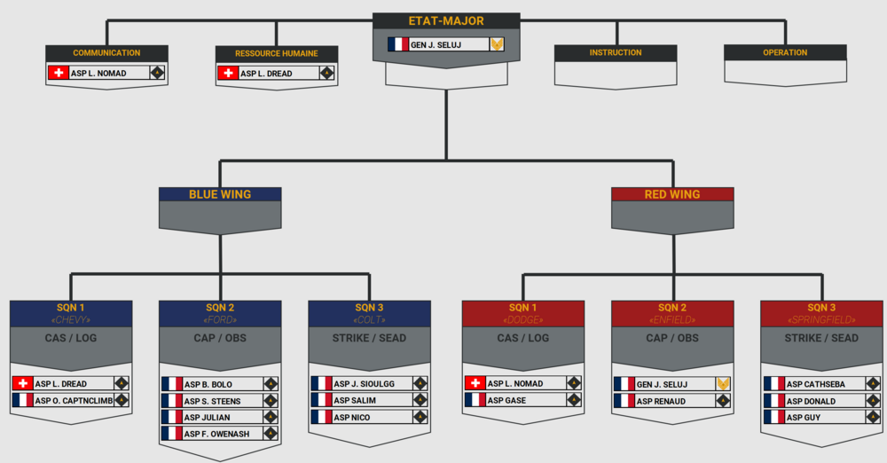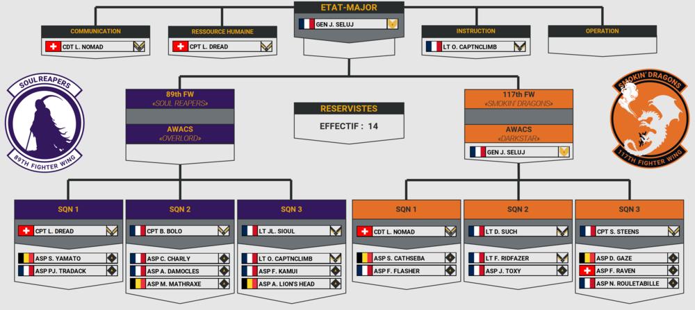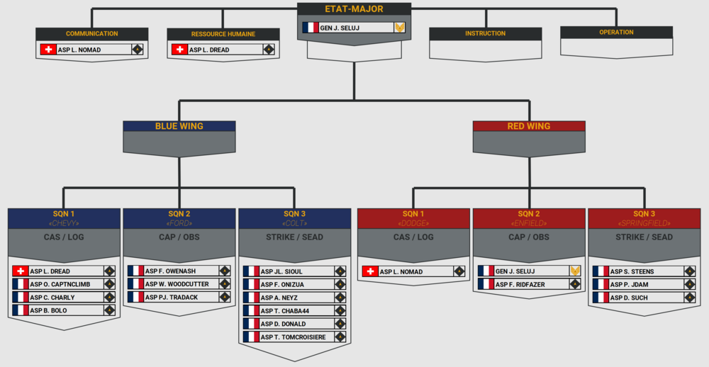 Première news depuis la nouvelles version de notre team. Plusieurs choses ont changé. Nous avons eu la promotion de plusieurs pilotes: CDT L. Nomad CPT S. Steens CPT B. Bolo CPT L. Dread LT JL. Sioul LT F. Ridfazer LT D. Such LT O. CaptNclimB Félicitation à eux ! Nous avons mis en place un système de radiocommunication grâce à SRS. Le serveur est passé dans une nouvelle version suite à une mise à jour de Pretense. Nous sommes maintenant en version 1.6.X. Un nouveau système de logbook est installé sur la mission, celui-ci devrait théoriquement gérer automatiquement vos heures de vol. Cela nous permettra plus aisément de promouvoir les gens qui ont le plus d'heures de vol à la fin de chaque mois, en fonction des postes à disposition dans l'organisation. En termes d'effectif nous avons fait un pas de géant. Environ 150% de joueurs actifs en plus. Merci à vous pour votre implication et votre participation à notre communauté ! La mission persistante Pretense sur Syrie est maintenant terminée, nous sommes donc repassés sur Caucase. Nous avons aussi effectué 5 Missions conduites, notamment notre propre mission OPERATION INHERENT RESOLVE. Pour le future, nous sommes toujours en train de préparer les livrées pour nos pilotes sous deux formats : - Les avions et hélicoptères génériques. Ceux-ci seront à destination de nos nouveaux pilotes et permettrons de toujours avoir des avions à nos couleurs. - Les avions et hélicoptères personnalisés. Ces derniers seront à destination de nos pilotes expérimentés et personnalisables selon les wings, escadrilles et choix personnel dans le respect de nos codes couleurs. ET ON TERMINE AVEC LE PLUS IMPORTANT !!! Les votes ont pris fin et nous sommes fiers de vous présenter les noms officiels de nos 2 escadrilles : 89th Fighting Wing SOUL REAPERS 117th Fighting Wing SMOKIN' DRAGONS https://www.1roc.fr/