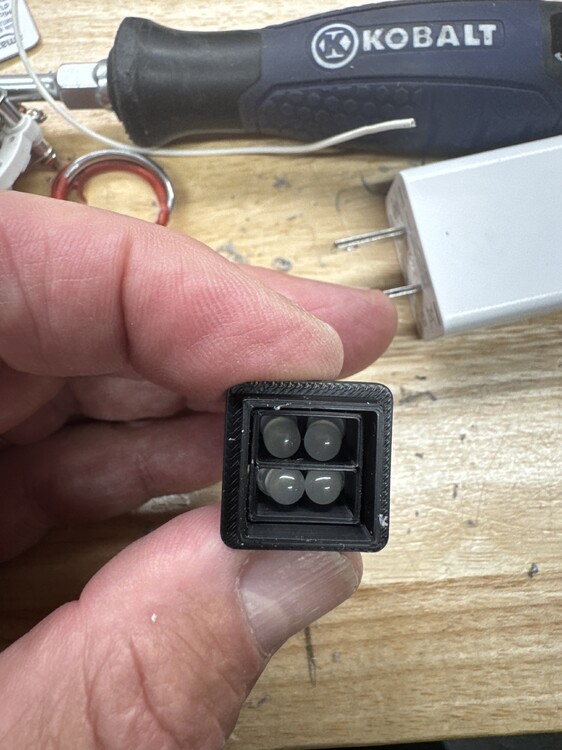 Two things.... 1. DCS via BORT can use momentary switches for these. I made a prototype with both Momentary Switches and Latching Switches, and went with the latching microswitches. 2. There is a bug in Port and/or DCSBIOS with regard to the "Search" Button and the "Altitude Button." If you mouse click these buttons they simply turn Search on and off as expected, and Altitude from Low to not low, however, if you use an external physical toggle button or the momentary button type using the Bort command that emulates a Toggle, or even push the "Toggle" button within BORT, those switches act incorrectly. When you hit your physical button the Button IN GAME moves but the light does not go off until you cycle this twice. I noted this when I used the original lighted button toggle switches (just flat top with white LED). Hopefully this bug can get fixed at some point. My 'design' was adopted from Joes Homecockpit design, but I made the inner button longer, moved the side pins down, and redid the base to allow the use of the different switch. Glueing the LED's in place is a must since the LED's move with the inner switch box and this moves the wires and makes the switches bind. I added the hot glue and bingo the switches worked better. My newer design is better and will use smaller gauge wire to eliminate binding. So I popped the Buttons off and hot glued the LED's, and can salvage this design. I'll use the better design for the ECM buttons. Top panel is still in my printer, the openings for the buttons was too tight, so had to reprint. Final photo to follow. Mike