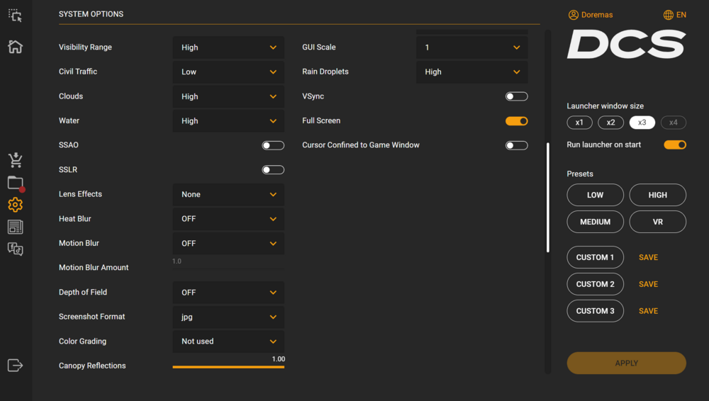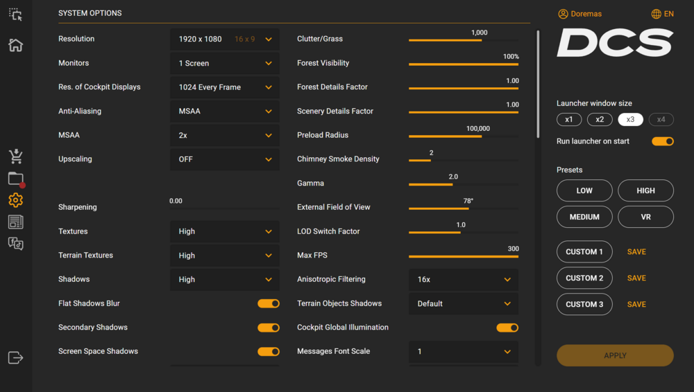 Buonasera a tutti, Ultimamente ho acquistato una RTX 4080 Super, per cercare di avere prestazioni migliori in VR, fino a poco tempo fa usavo una AMD RX6590XT con cui ho ottenuto ottimi risultati con 90fps fissi e un ottimo FRAME RATE. Dopo l'ultimo aggiornamento, ho notato che quest'ultimo è diventato parecchio instabile, molto ballerino e questo mi causava grossi problemi con la AMD, ora che ho la RTX 4080S ho un netto miglioramento in VR come fluidità, ma non ho minimamente toccato i settaggi della scheda sul pannello di controllo NVIDIA. So che potre migliorare notevolmente la stabilità a meno che non sia un problema della versione stessa ad essere così instabile. Chiedo a qualcuno di voi che magari utilizza la mia stessa scheda di condividere qualche perla di saggezza per trovare una quadra alla storia. In allegato metto le impostazioni di DCS che sto utilizzando. Accetto consigli da tutti. Grazie in anticipo e buonanotte Build: MB: MSI Carbon WiFi X670E CPU: AMD 7950X3D RAM: 64GB 6600Mhz Corsair SSD: 3 da 2TB SK VIDEO: RTX 4080S OCULUS: META QUEST 3