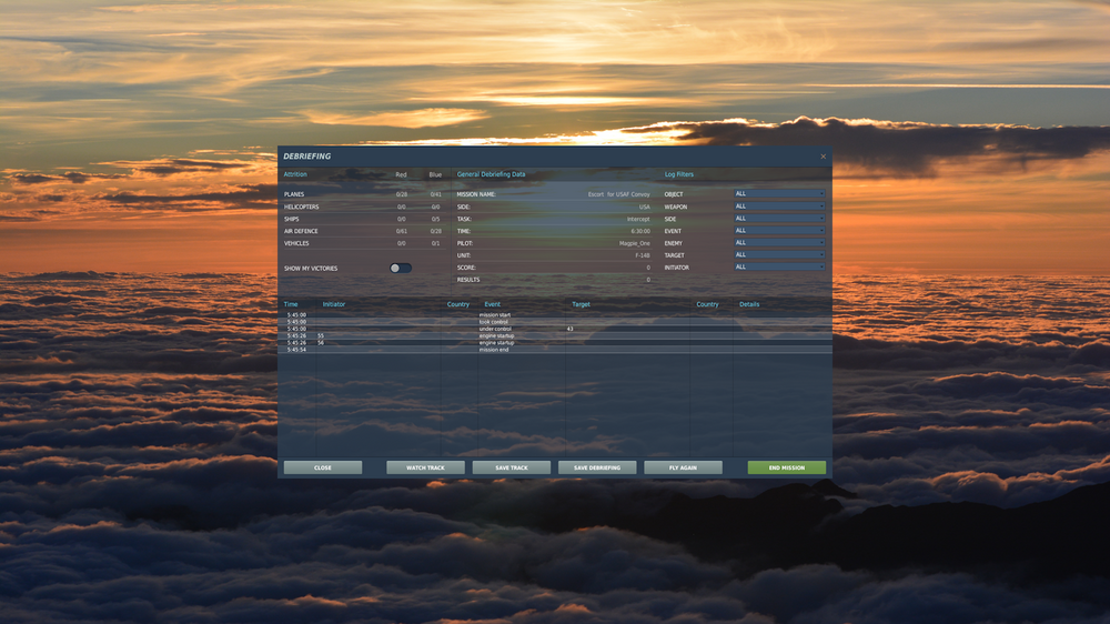 When I want to fly mission 6 and clicked the 'Fly' button it doesn't let me enter the mission. The output is that the window with the results at the end of a mission opens, claiming I flew it for more than an hour. Somehow, in the mission menu it then says the mission is accomplished.