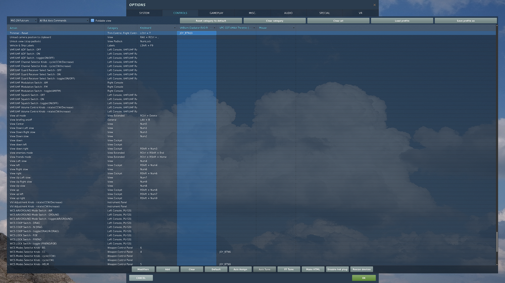 Настраивал свой рус вкб гладиатор, назначал кнопки, делал НЕСКОЛЬКО разных сохранений, но…. в один момент все сохранения слетели и номера кнопок/осей встали, как на руд вирпил кадет. Хорошо, отдельно сохранился один файл на рабочем столе(все настройки последние всех модулей дополнительно сохраняю отдельно от dcs). Не знаю, относится ли это к багам мига или нет, однако вот такая история.