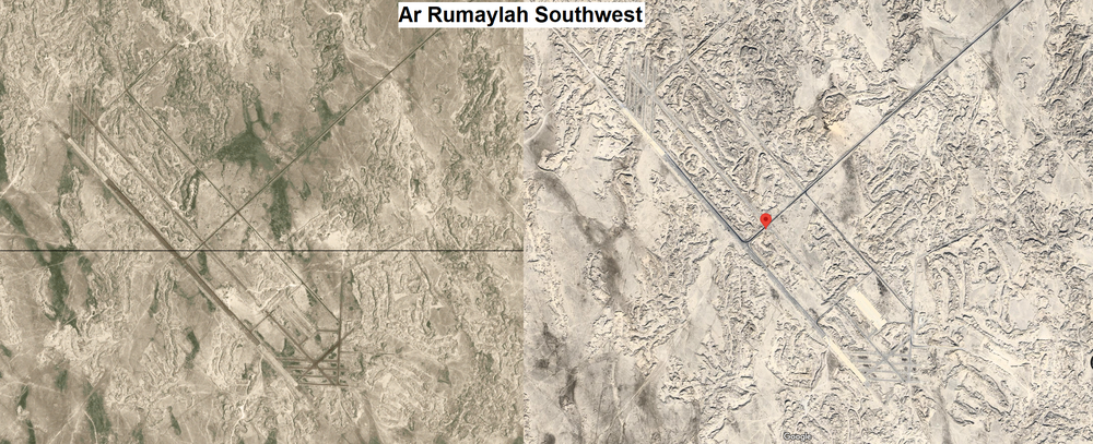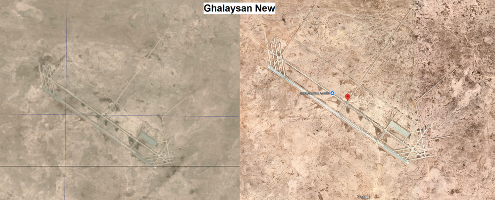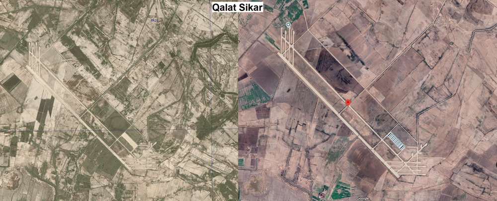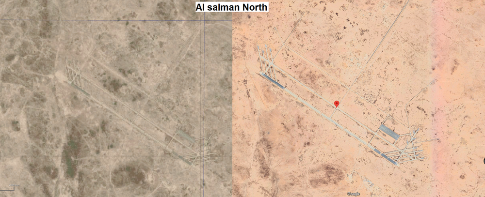 Here is a further visualization from our version in DCS and a quick Google Maps screenshot of these Air Bases with coordinates and notes: Kut Al Hayy, (32°06'56.0"N 46°22'49.0"E), with hardened shelters still visible in 2003 photos from Source above. Qalat Sikar, (31°50'13.0"N 46°18'23.0"E), with hardened shelters visible in 1995 from source above. Amara New, (31°49'11.0"N 47°04'51.0"E), with hardened shelters as per source above. Abandoned after Desert Storm. Qalat Salih, (31°27'28.0"N 47°17'28.0"E), still have not found a Source for this one. Google Maps show rounded Shelters, these could be Coaltion installations and not Iraqi ones with their distinct trapezoid shape. These can very well be Iraqi Installations as per this source. Wadi Al Khirr, (31°25'25.0"N 43°11'15.0"E), with 12 hardened shelters in 1991 as per source above. Silhouettes still visible today on Google Maps. Ghalaysan New, (30°55'00.0"N 43°40'33.0"E), faint silhouettes of possible hardened shelters are visible today on Google Maps. Al Salman North, (30°38'59.0"N 44°34'10.0"E), silhouettes of hardened shelters visible today on Google Maps. Jalibah Southeast, (30°32'44.0"N 46°36'14.0"E), with hardened shelters as per source above, silhouettes of shelters still visible today on Google Maps. Ar Rumaylah Southwest, (30°21'19.0"N 47°06'36.0"E), with hardened shelters as per source above.