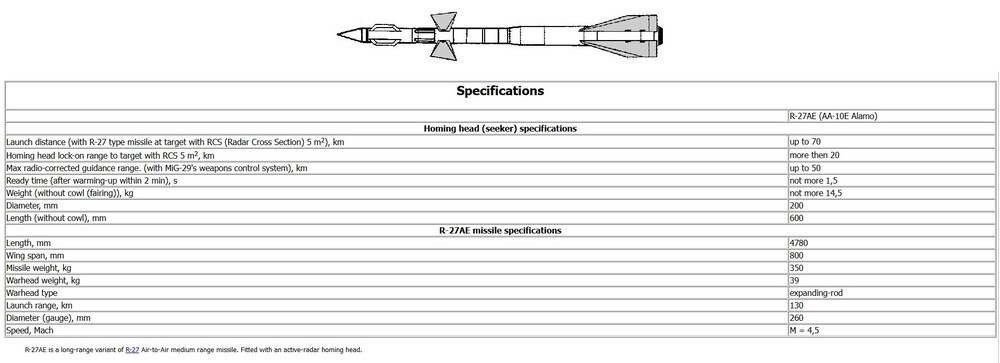 name = "r-27er_3"; file = "r-27er"; life = 1; -- load = { false, false}; fire = { 0, 1}; username = "R-27AE (AA-10C)"; index = 12; name = "r-27er_2"; file = "r-27er"; life = 1; -- load = { false, false}; fire = { 0, 1}; username = "R-27EM (AA-10C) "; index = 17; file = "r-37"; life = 1; -- load = { false, false}; fire = { 0, 1}; username = "R-37"; index = 20; A bit of interest from the DCS World files! It will be more interesting if Meteor and AIM-120D also enter the game room!