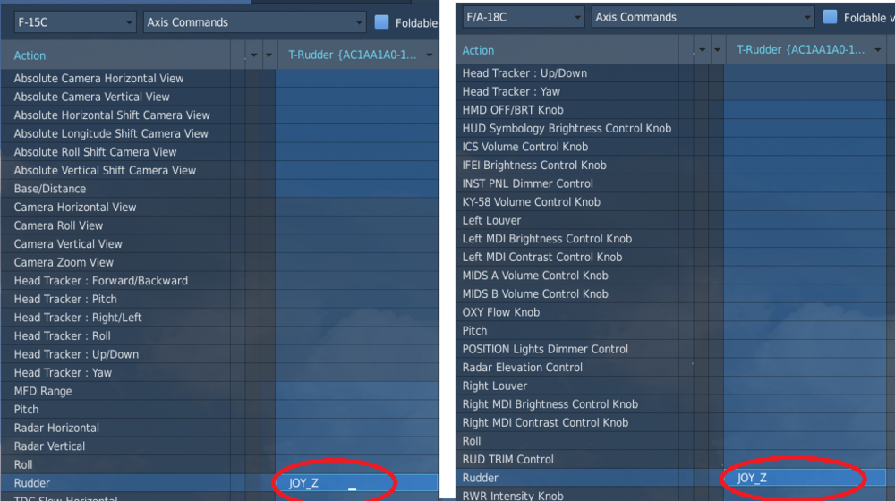 Hello. There is an issue with the rudder control input for the F-15C. Please take a look at the attached image. The mechanical rudder position is centered, but in the F-15C settings screen, the detected position is to the left. When I switch to the F/A-18C in this state, it shows the correct centered position. Do you know why this phenomenon occurs with the F-15C? null