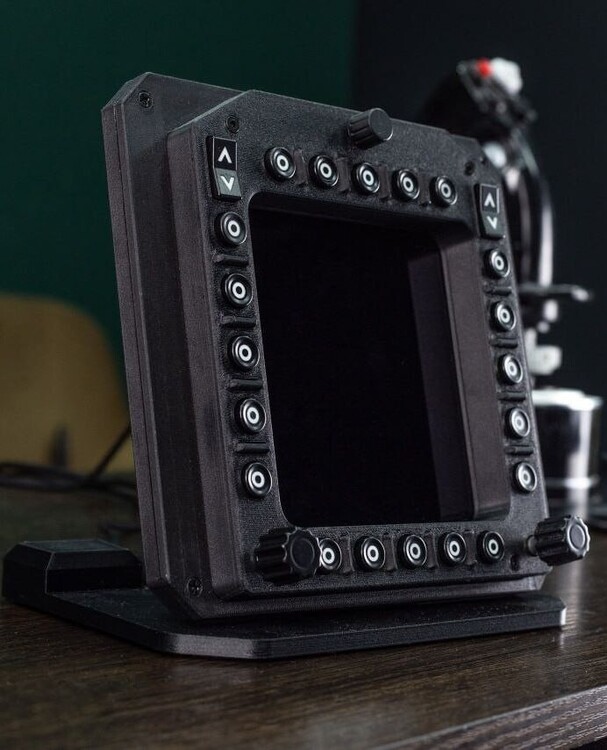 Всем привет! Ранее мы показывали вам процесс работы над некоторыми деталями MFD - Bullseye, сегодня мы готовы показать вам обновленное устройство целиком, а также рассказать о новых аксессуарах. Изучив ваши отзывы мы подготовили специальную подставку, на которую легко крепится MFD. Теперь при заказе можно выбрать в какой комплектации вы хотите получить устройство. В зависимости от комплектации вам доступны 4 возможных способа крепления: на кронштейне на подставке через пазы к алюминиевому профилю шириной 4 см. без аксессуаров через фланец на MFD Обновленный MFD получил новые кнопки, обладающие большим ходом для улучшения тактильных ощущений. Благодаря 3д печати удалось добиться высокой точности подгонки всех деталей, за счет чего мы уменьшили зазоры и улучшили внешний вид устройства. Кронштейн так же был переработан, теперь он гораздо легче, прочнее и стабильно держит заданный угол под большей нагрузкой. Приобретайте MFD - Bullseye со специальной скидкой в 8% осталось всего 5 штук