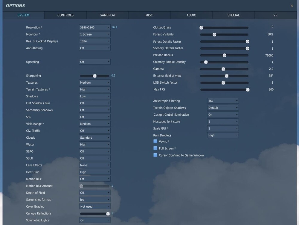 I have only DCS on this rig after I did the OS re-install and I'm running OpenXR and Quadviews on the Pimax native software. I tried the DCS FPS slider on 95 and 45. 95 was no visible difference to 300 but on 45 the image (looking sideways out the cockpit at 50m altitude) was awful. Micro-stutter on steroids. Firmware? No, I downloaded the latest Pimax Play but I had no idea there was a firmware update too. I'll do that now. Um, no I won't, it says there isn't one. Lol. My current firmware is 1.3.0_au0531 -