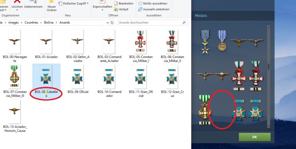 Hello ED, In the LogBook (right side) one Medal is not displayed (Red marked), after I check in: :\Program Files\Eagle Dynamics\DCS World\MissionEditor\data\images\Countries\Bolivia\Awards.. I find it out that there is file-name mistake (Yellow marked) the dash must be [-] Not [_]. if you just edit it, bug is fixed.
