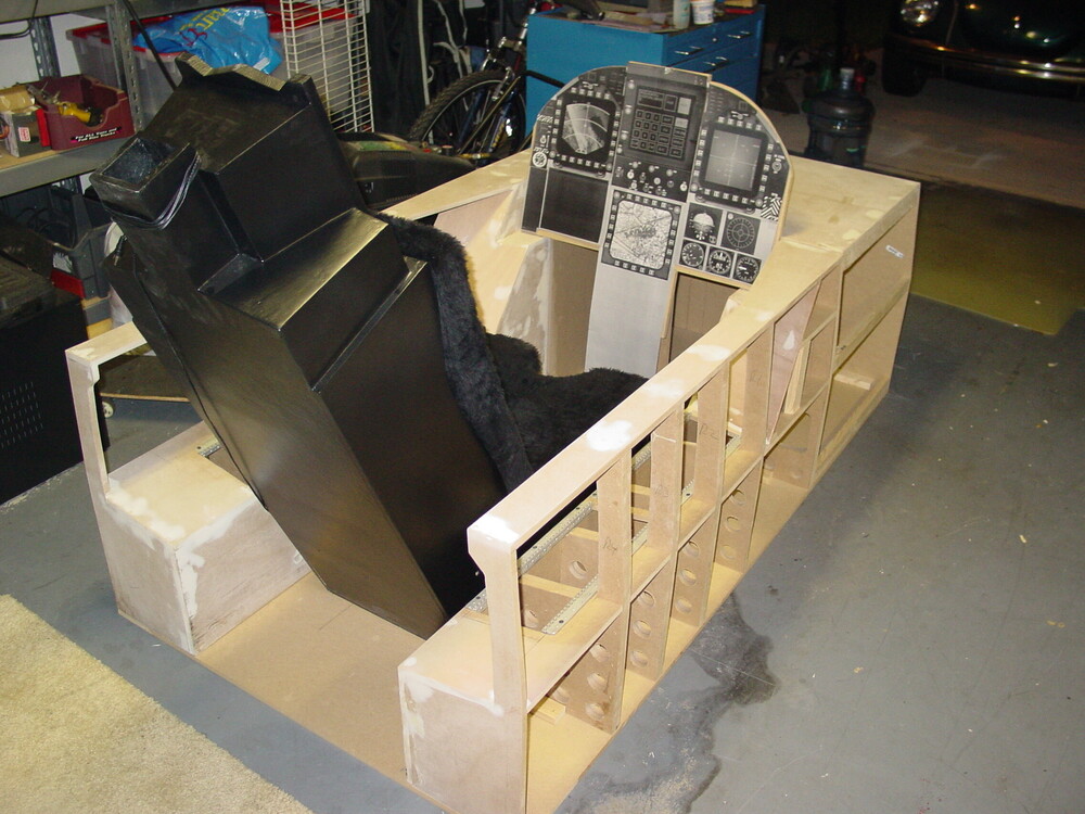 The fidelity factor was, and still is close enough for me. I just want to get to the point that the important switches are in a realistic place, The UIP and LIP are fully modeled and functioning, and I can fly without using a mouse or keyboard. This is how it all started with the rough finish of the cockpit shell. The only plans I had for a seat were for the ACES II, so that's what I built, but I altered the recline position to match the NACES as much as I could. The left and right consoles lift off the base as well as the "nose" section. I just used strategically positioned blocks on the base to keep them in the correct position. I will have to completely redo the base, because I made it out of MDF and since it would not fit in the attic it got wet in the garage when I forgot to close the door during a thunderstorm. The plan is to mount castors on the base, so I would have to remake it any way with stronger material. I'm really looking at the Winwing MIP and the PTO2 Panel to get started and build on from there. Probably just a really big single monitor or HDTV to start and see what happens. I hope to have it back in the garage in a few weeks, new paint job, and then get to the real work. If anyone is interested in a lower fidelity pit, I still have all the original CAD files for this one. Thanks for reading! Cheers!! Ed