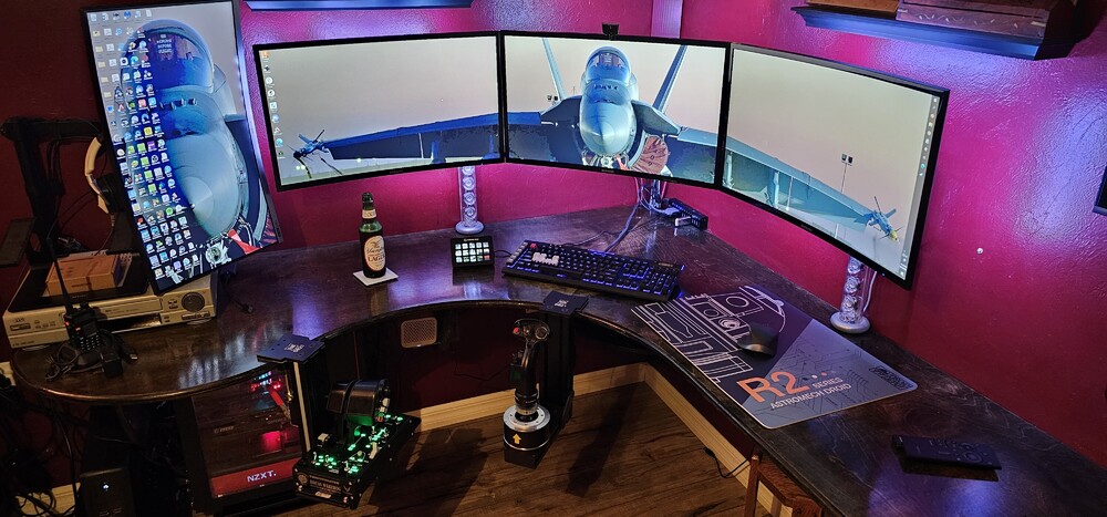 Just upgraded the"Deskpit"with new HOTAS mounts from SB21. These are AWESOME!!! Will definitely be spending time in here tomorrow... along with my puppy as usual